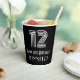 Cette tasse de papier d'anniversaire de style années 1920/1930, inspirée et vintage, est décorée d'un grand modèle Art déco inspiré numéro "12", en plus du message de voeux d'anniversaire "Happy 12th Birthday", et d'un nom personnalisé. Il dispose également d'une arrière - plan de couleur noire. Des tasses de papier sur le thème de l’anniversaire comme celle-ci pourraient être utilisées lors d’une fête d’anniversaire célébrant le douzième anniversaire de quelqu’un. [~Z0000542]