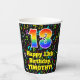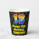Ce design de gobelet papier à thème musical excitant et gai comporte un grand nombre de "13" avec un dégradé arc-en-ciel inspiré motif, avec le message "Joyeux 13e anniversaire", et un nom personnalisé. L'arrière - plan dispose d'un motif multicolore avec des notes de musique et des symboles de différentes tailles et couleurs. Des tasses de papier colorées et vibrantes comme celle-ci peuvent être amusantes à utiliser lors d’une fête d’anniversaire ou d’une fête organisée pour célébrer le 13e anniversaire de quelqu’un. [~Z0000541]