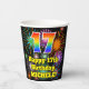 Cette conception amusante et colorée de tasse en papier à thème d'anniversaire comporte un grand nombre "17" avec un dégradé de arc-en-ciel inspiré motif, avec le message "Happy 17th Birthday,", et un nom personnalisé. L'arrière - plan présente un motif coloré, inspiré par des feux d'artifice, qui éclate en couleurs. Des tasses en papier colorées et vibrantes comme celle-ci peuvent être amusantes à avoir lors d’une fête d’anniversaire ou d’une fête qui se tient à l’occasion du dix-septième anniversaire de quelqu’un. [~Z0000539]