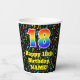 Ce design coloré et amusant sur le thème de la musique d'anniversaire en papier tasse d'anniversaire dispose d'un grand nombre "18" avec un dégradé de spectre arc-en-ciel inspiré motif. Il comporte également le message "Joyeux 18ème anniversaire", et un nom modifiable. L'arrière - plan dispose d'un motif dynamique et coloré avec des notes de musique et des symboles de différentes tailles et couleurs. Des tasses de papier colorées et vibrantes comme celle-ci peuvent être amusantes à avoir lors d’une fête d’anniversaire qui se tient à l’occasion du 18e anniversaire de quelqu’un. [~Z0000541]