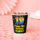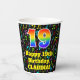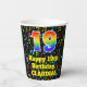 Ce design de gobelet en papier d'anniversaire à thème de musique joyeuse et joyeuse comporte un grand nombre de "19" avec un dégradé de arc-en-ciel inspiré motif, ainsi que le message "Happy 19th Birthday," et un nom modifiable. L'arrière - plan dispose d'un motif de notes de musique multicolores et de symboles. Des tasses de papier colorées et vibrantes comme celle-ci peuvent être amusantes à avoir lors d’une fête d’anniversaire ou d’une fête qui a lieu pour honorer le dix-neuvième anniversaire de quelqu’un. [~Z0000541]