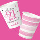 Personnalisé, Custom 21st Birthday Paper Cups célébrant 21 fabuleuses années en cool rose et noir script typographie.