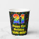 Ce design coloré et joyeux sur le thème de la musique d'anniversaire de tasse de papier dispose d'un grand nombre de "21" avec un dégradé arc-en-ciel inspiré motif. Il comporte également le message "Joyeux 21e anniversaire", et un nom personnalisé. L'arrière - plan est doté d'un motif multicolore de notes de musique et de symboles divers, avec une variété de couleurs et de tailles. Des tasses en papier colorées et vibrantes comme celle-ci peuvent être amusantes à avoir lors d’une fête d’anniversaire qui a lieu pour célébrer le 21e anniversaire de quelqu’un. [~Z0000541]