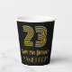 Ce style vintage et le style des années 1920-1930 inspiré par le design de tasse de papier à thème d'anniversaire, comprend un grand numéro de style Art déco inspiré "23", en plus du message de bienvenue d'anniversaire "Happy 23e anniversaire", et un nom personnalisé. L'arrière - plan est noir de couleur. Des tasses de papier inspirées du style des années 1920-1930, comme celle-ci, pourraient être utilisées à une fête d’anniversaire pour célébrer le vingt-troisième anniversaire de quelqu’un. [~Z0000546]
