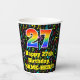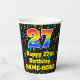 Cette musique passionnante et amusante sur le thème de la conception de tasse de papier d'anniversaire dispose d'un grand nombre "27" avec un gradient de spectre arc-en-ciel inspiré motif. Il comporte également le message "Joyeux 27e anniversaire", et un nom personnalisé. L'arrière - plan est doté d'un motif multicolore de notes de musique et de symboles divers, avec une variété de couleurs et de tailles. Des tasses en papier colorées et vibrantes comme celle-ci peuvent être amusantes à avoir lors d’une fête d’anniversaire ou d’une fête qui a lieu pour célébrer le vingt-septième anniversaire de quelqu’un. [~Z0000541]