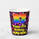Cette conception amusante et joyeuse de tasse en papier à thème d'anniversaire comporte un grand nombre de "37" avec un dégradé arc-en-ciel inspiré motif, avec le message "Happy 37th Birthday,", et un nom modifiable. L'arrière - plan présente un motif de formes de coeur violet, rouge et rose de différentes tailles. Des tasses de papier optimistes et aimantes comme celle-ci peuvent être amusantes à utiliser lors d’une fête d’anniversaire qui a lieu pour célébrer le 37e anniversaire de quelqu’un. [~Z0000548]