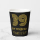 Ce look vintage et le style des années 1920-1930 inspiré design de tasse de papier d'anniversaire comprend un grand numéro d'apparence d'inspiration art déco "39", plus le message de voeux d'anniversaire "Happy 39th Birthday," et un nom modifiable. Il dispose également d'une arrière - plan de couleur noire. Des tasses de papier inspirées du style des années 1920-1930, comme celle-ci, pourraient être utilisées lors d’une fête d’anniversaire pour célébrer le 39e anniversaire de quelqu’un. [~Z0000546]