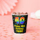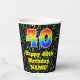 Ce design coloré et amusant sur le thème de la musique de tasse de papier d'anniversaire comporte un grand nombre de "40" avec un dégradé de spectre arc-en-ciel inspiré motif, avec le message "Joyeux 40e anniversaire", et un nom personnalisé. L'arrière - plan dispose d'un motif passionnant et coloré avec des notes de musique et des symboles de différentes tailles et couleurs. Des tasses en papier colorées et vibrantes comme celle-ci peuvent être amusantes à utiliser lors d’une fête d’anniversaire ou d’une fête qui se tient pour célébrer le quarantième anniversaire de quelqu’un. [~Z0000541]