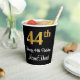 Cette conception élégante, luxueuse et élégante de tasse en papier d'anniversaire comporte un grand numéro ordinal "44th" avec une imitation/faux motif en dégradé d'inspiration or, ainsi que le message de voeux d'anniversaire "Happy 44th Birthday," et un nom personnalisé dans une police de style script. Il dispose également d'une arrière - plan de couleur noire. Des tasses en papier élégantes comme celle-ci peuvent être amusantes à utiliser lors d'une fête d'anniversaire organisée pour quelqu'un qui célèbre son quarante-quatrième anniversaire. [~Z0000538]