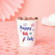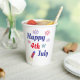 Stylish patriotic Quart de Juillet sur mesure conception de bocal de mason dispose d'un "Happy 4 juillet" de citation typographie texte design en rouge, bleu et bleu marine couleurs avec feux d'artifice célébrant
