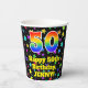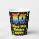 This exciting and colorful birthday-themed paper cup desobjets a large number "50" with rainbow spectrum gradient inspecred pattern, along with the message "Happy 50th Birthday," et an editable name. The background feobjets a multicolored pattern having many star shapes with different sizes and colors. Colorful, vibrant paper cups like this might be fun to have at a birthday celebration g held to honor somebody's fiftieth birthday. 2