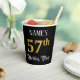 Ce design luxueux et raffiné de tasse de papier d'anniversaire comporte un nom personnalisé et le message "57th Birthday Party". Le grand numéro "57th" a une imitation/faux motif de couleur d'inspiration or, les mots "Birthday Party" sont dans un texte élégant de style script, et l'arrière - plan est coloré noir par défaut (bien qu'il puisse être customisé). Des tasses de papier élégantes et ornées comme celle-ci peuvent être utilisées lors d’une fête d’anniversaire ou d’une célébration pour célébrer le 57e anniversaire de quelqu’un. [~Z0000567]