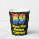 Ce design coloré et passionnant de musique à thème d'anniversaire en papier tasse d'anniversaire dispose d'un grand nombre "59" avec un gradient de spectre arc-en-ciel inspiré motif. Il comporte également le message "Joyeux 59e anniversaire", et un nom personnalisable. L'arrière - plan est doté d'un motif multicolore de notes de musique et de symboles divers, avec une variété de couleurs et de tailles. Des tasses en papier colorées et vibrantes comme celle-ci peuvent être amusantes à utiliser lors d’une fête d’anniversaire qui se tient pour célébrer le 59e anniversaire de quelqu’un. [~Z0000541]