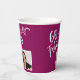 60 et fabuleux Script Photo Magenta 60th Birthday Paper Cups. Écriture blanche tendance et feuillage blanc avec une photo personnalisée sur une couleur rouge magenta chic et vive. Faites-lui des tasses de fête à 60 ans. Customisez avec le nom et l'âge et ajoutez votre photo au modèle.