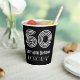 Cette tasse en papier d'anniversaire inspirée et de style vintage des Années folles est décorée d'un grand numéro de style Art déco "60", ainsi que le message d'anniversaire "Joyeux 60e anniversaire" et un nom personnalisé. L'arrière - plan est noir de couleur. Des tasses de papier sur le thème de l’anniversaire comme celle-ci pourraient être utilisées lors d’une fête d’anniversaire célébrant le 60e anniversaire de quelqu’un. [~Z0000542]