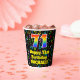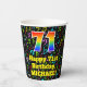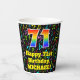 Ce design coloré et passionnant de tasse de papier d'anniversaire sur le thème de la musique comprend un grand nombre de "71" avec un motif inspiré par un gradient de spectre arc-en-ciel. Il comporte également le message "Joyeux 71e anniversaire", et un nom personnalisé. L'arrière - plan dispose d'un motif passionnant et coloré de divers notes de musique et symboles ayant une variété de tailles et de couleurs. Des tasses de papier colorées et vibrantes comme celle-ci peuvent être amusantes à utiliser lors d’une fête d’anniversaire ou d’une fête qui a lieu pour honorer le soixante-et-onzième anniversaire de quelqu’un. [~Z0000541]