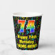 Ce design de tasse de papier d'anniversaire à thème musical gai et excitant comporte un grand nombre de "74" avec un dégradé de arc-en-ciel inspiré motif, avec le message "Happy 74th Birthday," et un nom personnalisable. L'arrière - plan dispose d'un motif coloré avec des notes de musique et des symboles de différentes tailles et couleurs. Des tasses en papier colorées et vibrantes comme celle-ci peuvent être amusantes à utiliser lors d’une fête d’anniversaire organisée pour célébrer le 74e anniversaire de quelqu’un. [~Z0000541]