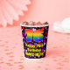 Ce design joyeux et joyeux de tasse en papier à thème d'anniversaire comporte un grand nombre de "76" ayant un dégradé arc-en-ciel inspiré motif. Il comporte également le message "Joyeux 76ème anniversaire", et un nom personnalisé. L'arrière - plan présente un motif de formes cardiaques avec des couleurs comme le rouge, le violet et le rose. De jolies tasses de papier comme celle-ci pourraient être amusantes à avoir lors d’une fête d’anniversaire qui se tient à l’occasion du 76e anniversaire de quelqu’un. [~Z0000548]