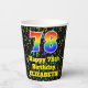 Ce design de gobelet en papier à thème musical amusant et coloré comporte un grand nombre de "78" ayant un dégradé de spectre arc-en-ciel inspiré motif. Il comporte également le message "Joyeux 78e anniversaire", et un nom personnalisé. L'arrière - plan dispose d'un motif passionnant et coloré de divers notes de musique et symboles ayant une variété de couleurs et de tailles. Des tasses de papier colorées et vibrantes comme celle-ci peuvent être amusantes à avoir lors d’une fête d’anniversaire qui se tient pour célébrer le 78e anniversaire de quelqu’un. [~Z0000541]