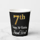 Cette conception sophistiquée, élégante et luxueuse de tasse en papier à thème d'anniversaire comporte un grand numéro ordinal "7th" ayant un look faux/imitation or, ainsi que le message de voeux d'anniversaire "Happy 7th Birthday," et un nom personnalisé dans une police de style script. L'arrière - plan est noir de couleur. Des tasses de papier sur le thème de l’anniversaire comme celle-ci pourraient être une façon amusante de célébrer le 7e anniversaire de quelqu’un. [~Z0000538]