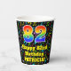 Ce design coloré et joyeux sur le thème de la musique d'anniversaire de tasse de papier dispose d'un grand nombre "82" avec un dégradé arc-en-ciel inspiré motif. Il comporte également le message "Joyeux 82e anniversaire", et un nom personnalisé. L'arrière - plan dispose d'un motif passionnant et coloré de divers notes de musique et symboles ayant une variété de tailles et de couleurs. Des tasses de papier colorées et vibrantes comme celle-ci peuvent être amusantes à avoir lors d’une fête d’anniversaire ou d’une fête célébrant le 82e anniversaire de quelqu’un. [~Z0000541]