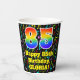 Ce design de gobelet en papier sur le thème de la musique joyeuse et amusante comporte un grand nombre de "85" avec un motif inspiré par un gradient de spectre arc-en-ciel, ainsi que le message "Happy 85th Birthday," et un nom personnalisé. L'arrière - plan dispose d'un motif de notes de musique colorées et de symboles. Des tasses en papier colorées et vibrantes comme celle-ci peuvent être amusantes à utiliser lors d’une fête d’anniversaire ou d’une célébration pour célébrer le quatre-vingt-cinquième anniversaire de quelqu’un. [~Z0000541]