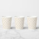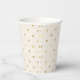 Gobelets en papier pour fête à motif pois dorés. Faux pois en feuille d'or sur fond rose pastel.