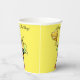Abeille de miel mignonne au coeur sur les tasses de papier jaunes d'anniversaire.