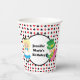 Cute Alice in Wonderland thème fête d'anniversaire tasse de papier pour un amoureux du livre ou un bibliothécaire qui aime lire des livres pour enfants. La petite fille Alice dans sa robe bleue et le Chapeau Mad assis sur un jeu de cartes motif en rouge et noir avec des pique-niques et des symboles de diamant. Customisez avec votre propre texte pour une faveur pour la fête des enfants.