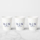 Ancrage nautique mariage marine bleu et blanc initiales monogramme Papier Cups. Design minimaliste élégant texte personnalisable vérifier le reste de la collection pour les faveurs, étiquettes cadeaux, autocollants, sceaux, étiquettes, fournitures de fête, sacs cadeaux, boîtes cadeaux, cartes, etc idéal pour les Mariages de bord de mer plage côtière