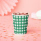 Cette tasse de papier amusante et lumineuse avec couvercle dispose d'un motif aquarelle vert et blanc plaid.
