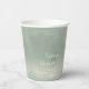 Cette tasse en papier mariage minimaliste a une atmosphère chaleureuse et personnelle et présente un design abstrait et aquarelle ressemblant à des reflets sur l'eau. Cet exemple présente une palette de couleurs dégradées allant du crème pâle au vert sauge doux. Customisez avec les noms de la mariée et du marié, un message personnel et la date du mariage en utilisant le modèle fourni. Recherchez ID774 pour voir l'ensemble complet de correspondances et les options de couleurs supplémentaires.