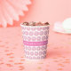 Ajoutez de la vaisselle mignonne et festive à votre événement avec ces tasses en papier de beignes. Il présente des beignets roses à l'aquarelle avec des arrosages colorés. Ces tasses en papier beignets roses sont parfaites pour les baby showers, les fêtes d'anniversaire, et plus encore. D'autres couleurs sont disponibles.