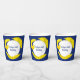 Créez des fournitures personnalisées pour les soirées d'anniversaire à thème et autres événements spéciaux. Ces tasses en papier illustrent des limaces de banane dans un décor jaune vif et ensoleillé contre un arrière - plan bleu royal. Votre message personnalisé est dans le script bleu royal correspondant par écrit contre un arrière - plan blanc.