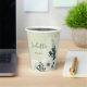 Magnifique tasse en papier botanique avec de belles fleurs blanches romantiques et feuilles vertes.