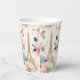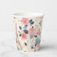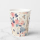 Tasses en papier avec un beau motif à thème français. Jolies fleurs et une tour Eiffel et papillons. Les couleurs comprennent le rose, le bleu, la pêche et la crème.