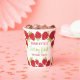 Berry First Strawberry 1st Birthday Party Cups papier personnalisé. Coupes de papier pour la fête du 1er anniversaire de la mignonne petite fille avec illustration de fraises.