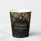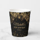 Coupes de papier personnalisées pour la fête d'anniversaire customisée pour le 50e anniversaire d'une femme avec des lampes à cordes dorées scintillantes et un bokeh pétillant sur un arrière - plan noir. Ce modèle est conçu pour que vous puissiez modifier n'importe quel texte, ce qui le rend parfait pour une fête célébrant n'importe quel âge. La couleur noire de l'arrière - plan est également personnalisable. Concevez vos tasses pour vos propres couleurs de fête. Contactez-moi pour obtenir de l'aide sur vos personnalisations ou pour demander des produits Zazzle correspondants ou coordonnés supplémentaires pour votre groupe.