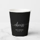 Ce design de tasse de papier présente des lettres "Cheers" stylisées dans un thème de couleur noire. Vous pouvez customiser le texte et ajouter cette tasse de papier à n'importe quel événement (fête d'anniversaire, mariage, anniversaire, fête de la retraite, fête de vacances, etc). Les invitations et les fournitures de fête correspondants sont disponibles dans ma boutique BaraBomDesign.