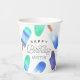 Conçues pour répondre aux invitations de fête d'anniversaire de nos enfants, ces mignonnes tasses personnalisées en papier ont une bordure de popsicles aquarelles en vert et bleu. "Joyeux anniversaire [nom]" apparaît dans le centre en lettres blanches.