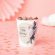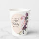 Ajoutez une touche personnelle mémorable à une célébration du 50e anniversaire avec ces tasses de papier personnalisées. Le thème est boho tropical floral et est fabuleux! Un cadre rond rose beige clair entoure le texte, accompagné d'un beau perroquet rose posé au sommet d'un bouquet d'éléments floraux tropicaux, dont la protéa violette et les orchidées aux baies sombres et à la végétation jungle. Il fait un merveilleux thème de fête avec un style tropical créatif et amusant. Tout le texte peut être customisé, de sorte que ce étiquette peut être utilisé pour n'importe quel anniversaire d'âge.