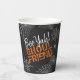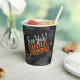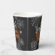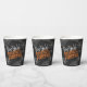Tasse en papier d'Halloween avec une araignée suspendue, des accents de toile d'araignée et la typographie "Boo Yah Ghoul Friend" en orange et blanc. Cherchez ID684 pour voir la coordination des fournitures et accessoires de la partie avec ce grand design.