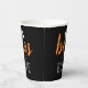 Moderne et mignon "Boos and Booze" Halloween coupes de fête en papier design caractéristiques texte en orange, gris charbon de bois, et lettrage blanc avec un petit accent fantôme.