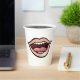 Une grande bouche ouverte montrant des dents. Cette conception semble vraiment efficace sur ces tasses de papier