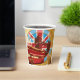 Un bus à deux étages en anglais avec la prise union. Cette conception semble vraiment efficace sur ces tasses de papier