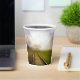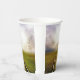 Ces tasses en papier ont une image artistique d'un chemin de fer dessus.
