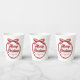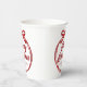 Scénario moderne et chic à travers un magnifique ruban rouge et arc lit MERRY CHRISTMAS en élégante typographie cursive. Un noeud noué est super tendance pour les tasses de papier fête de 2025. Personnalisez avec votre nom de famille ou d'entreprise dans le centre.