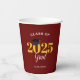 Cette tasse de papier personnalisée marron est un accent parfait pour toute célébration de graduation. Le texte en or et blanc dit : Classe de 2022 Grad. Un tableau noir de mortier se trouve au-dessus du zéro de l'année.