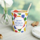 Construisez la fête d'anniversaire parfaite pour votre petit constructeur préféré avec ces coupes de fête sur mesure amusantes. Ils présentent des illustrations de briques de construction de jouets en plastique dans des couleurs primaires vives avec votre propre message personnalisé au milieu en lettres bleues.