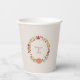 Tasses en papier mariages avec couronne d'automne et ses feuilles d'érable, de hêtre, de chêne et de noisette, champignon, cacre, citrouille, châtaignes et noix en automne pour une réception magique sur le thème de la nature et de la forêt !